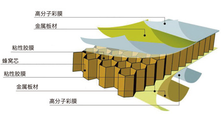 彩色不銹鋼蜂窩板結構特性:蜂窩板從面板材質、形狀、接縫、安裝系統到顏色、表面處理為設計師提供豐富的選擇,蜂窩板系列產品規格豐富,可提供多種板面造型,特別適用于大版面的應用